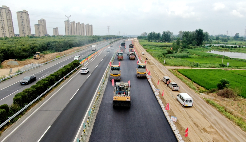 【名媒聚焦】蚌埠日報:蚌明改擴建進度條刷新——G36寧洛高速蚌明改擴建01標項目順利完成首個AC-25C瀝青下面層試驗段攤鋪,進入路面施工階段