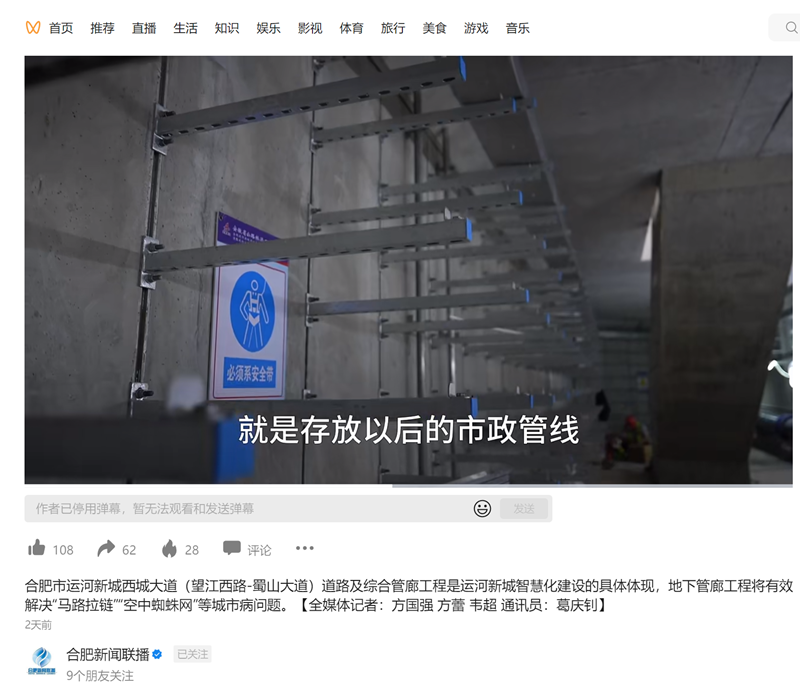 【名媒聚焦】合肥新聞聯(lián)播報(bào)道公司承建的西城大道及綜合管廊項(xiàng)目完工