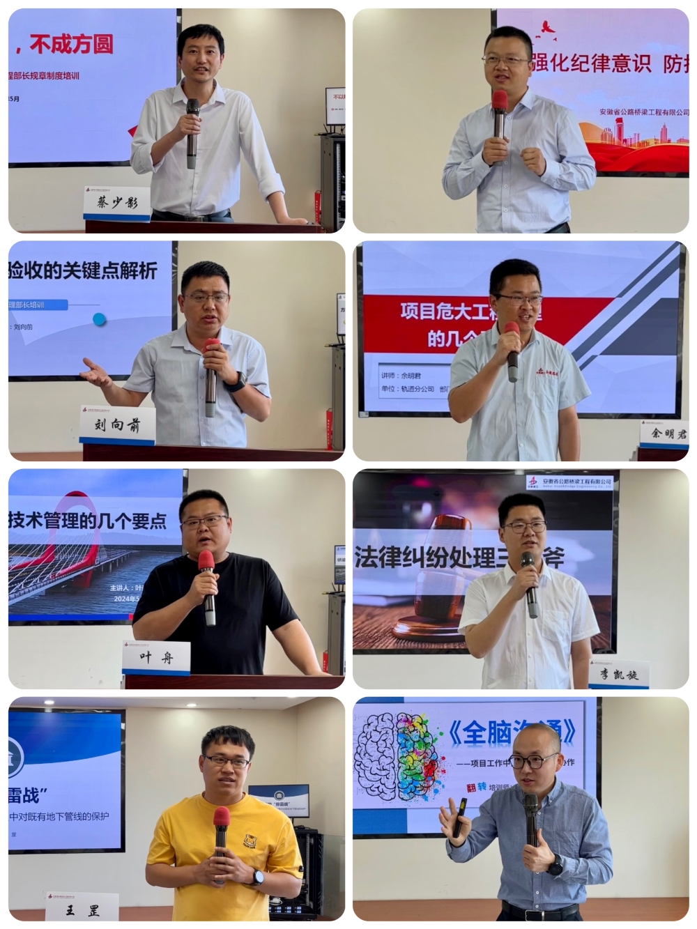 培訓(xùn)采用新老講師結(jié)合的形式,內(nèi)容涉及公司最新規(guī)章制度解析、方案編制和檢查驗(yàn)收、橋梁工程施工技術(shù)、地下管線保護(hù)、項(xiàng)目危大工程、廉潔教育、法律糾紛處理以及通用管理課程等。