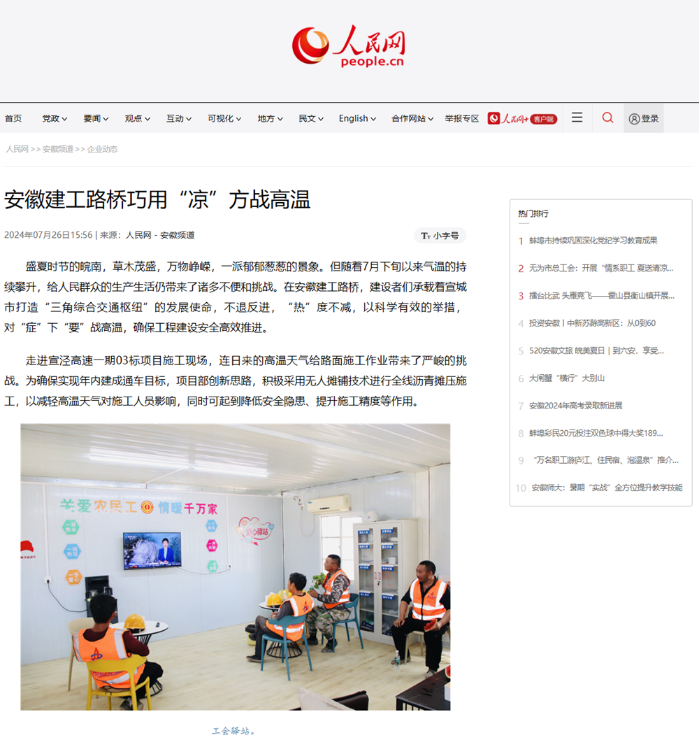 【名媒聚焦】人民網(wǎng):安徽建工路橋巧用“涼”方戰(zhàn)高溫