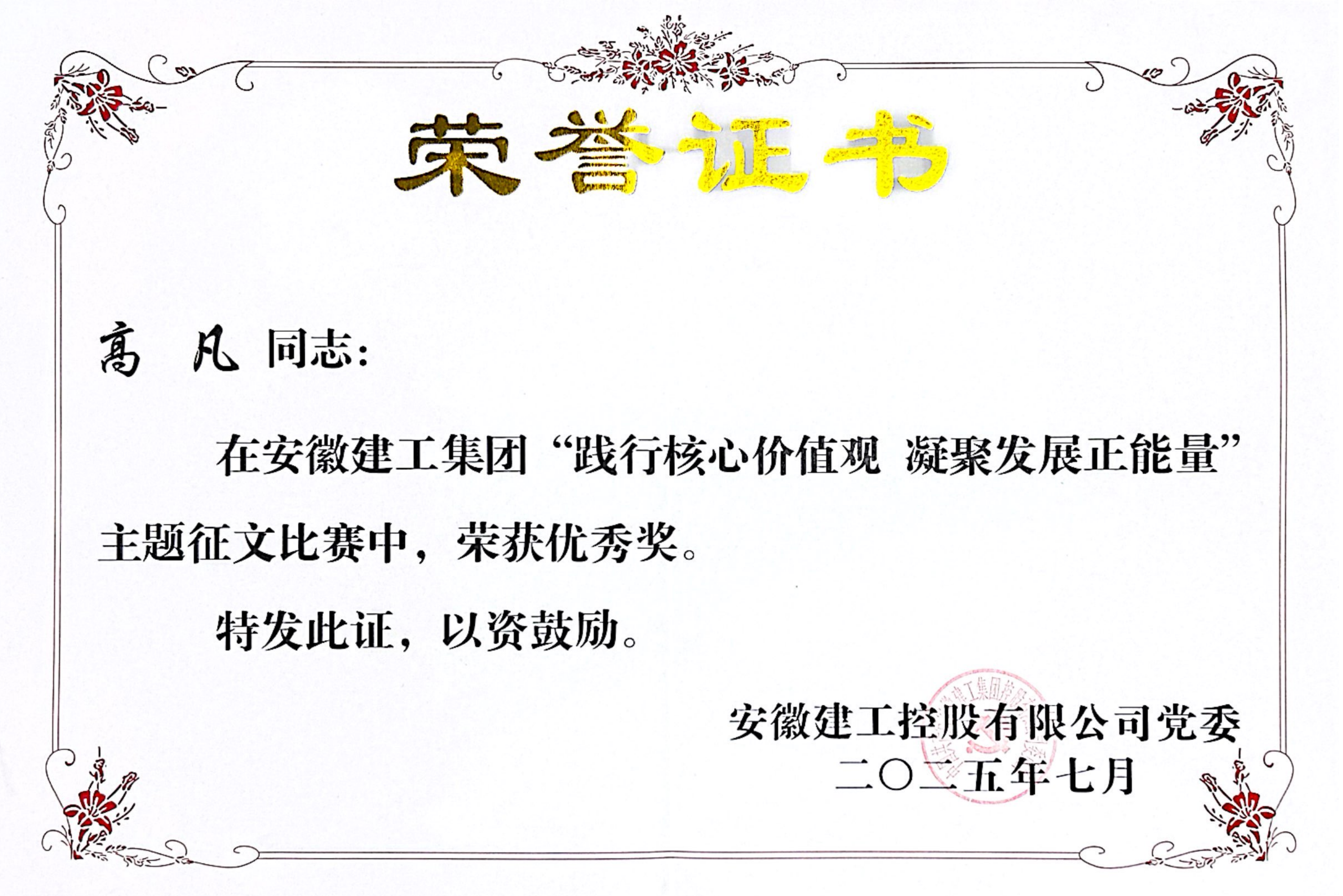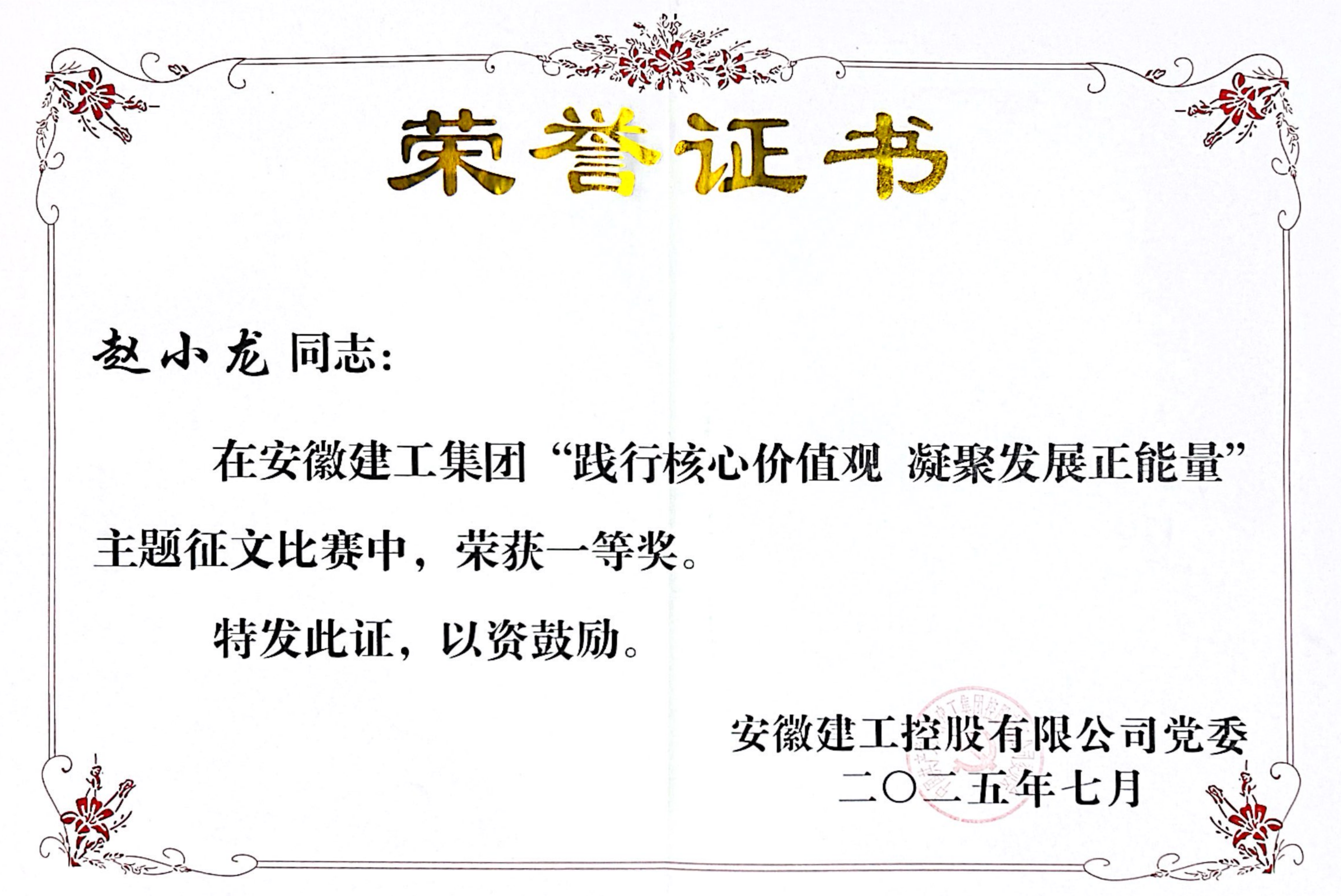 近日,集團(tuán)“踐行核心價(jià)值觀,凝聚發(fā)展正能量”主題征文比賽結(jié)果公布,公司報(bào)送的多個作品在數(shù)十篇優(yōu)秀作品中脫穎而出。其中,合肥分公司趙小龍同志作品《踐行核心價(jià)值觀,織就立體交通新篇章——安徽建工合肥新橋機(jī)場綜合交通中心建設(shè)紀(jì)實(shí)》斬獲一等獎,公路一公司丁自亮同志作品《戎裝換工服 丹心映初心——一名退役軍人的核心價(jià)值觀踐行之路》、橋梁公司高凡同志作品《經(jīng)緯縱橫處 燈火照長路——建工價(jià)值觀的泥土與鋼》榮獲優(yōu)秀獎。