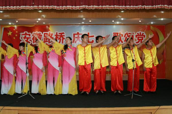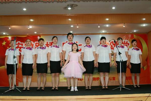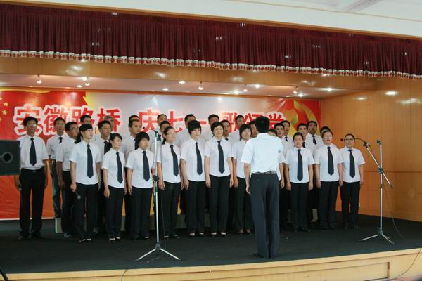 緊接著,慶七一,歌頌黨職工歌詠大賽開始。比賽在路面公司激昂的《沒有共產黨就沒有新中國》合唱聲中拉開序幕,比賽場上,參賽隊員精神飽滿,著裝整齊,懷著對中國共產黨、對祖國的深厚感情,熱情高歌《今天是你的生日我的中國》、《愛我中華》、《歌唱祖國》、《精忠報國》、《咱們工人有力量》、……發(fā)自肺腑的歌聲深深感動了現場觀眾。