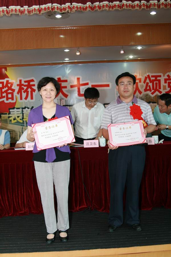 會議在雄壯的《國際歌》聲中開始。黨委書記陳光磊作了《牢記宗旨、珍惜榮譽、勇往直前》激情洋溢的講話。她說:今天我們大家在此歡聚一堂,紀念我們偉大的中國共產黨成立88周年,并對公司2008年度的先進基層黨組織和優(yōu)秀黨員、黨務工作者進行集中表彰。這是一個喜慶的日子,也是一個值得紀念的日子。在此,我謹代表公司黨委對所受表彰的先進單位和個人表示熱烈的祝賀,向公司所有的黨員表示崇高的敬意。接著她深情回顧了黨的光輝歷程,同時要求我們也應該更加自覺地牢記黨的宗旨,在自己的工作崗位上勤奮、踏實、敬業(yè)的工作,為黨徽增光,為黨旗添彩。隨后,陳書記對2008年的黨委工作進行了回顧總結,并對2009年下半年就如何進一步加強黨的建設,深入學習實踐落實科學發(fā)展觀,更好地發(fā)揮黨組織的政治核心作用、戰(zhàn)斗堡壘作用和黨員的先鋒模范作用,提了幾點要求:一、繼續(xù)認真開展學習實踐科學發(fā)展觀活動,充分認清制約公司科學發(fā)展的問題,并有效整改,使公司走上科學發(fā)展的軌道;二、轉變觀念,找準黨建工作的“切入點”,積極主動的融入中心工作,充分發(fā)揮基層黨組織的戰(zhàn)斗堡壘作用;三、充分發(fā)揮共產黨員先鋒模范作用,增強號召力、凝聚力、戰(zhàn)斗力。最后,陳書記號召全體黨員把全部心思和精力集中到加快公司發(fā)展上,把各方面的力量凝聚到加快公司發(fā)展上,把共產黨人的先進性體現到加快公司發(fā)展上,以更加飽滿的熱情、更加務實的精神、更加積極的工作狀態(tài)投入到各項工作中去,團結帶領公司廣大員工,努力把握發(fā)展的大好機遇,為促進安徽路橋的穩(wěn)健發(fā)展做出新的貢獻。