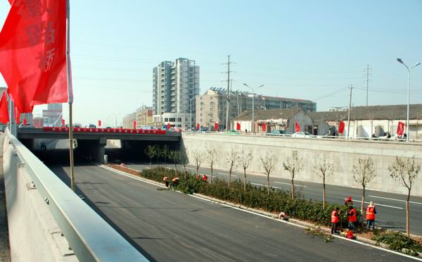 新蚌埠路與北二環(huán)路立交橋采取北二環(huán)路下穿新蚌埠路的路塹式結構,通過立交銜接,兩條路實現交通分流,成為北部城區(qū)的兩條快速通道。該項目自2008年9月開工以來,積極響應公司號召,發(fā)揚“團結拼搏、優(yōu)質高效”的精神,趕進度、保質量、重安全,全體員工們團結一致,艱苦奮斗,于2009年3月順利完成施工任務,比原計劃工期提前了兩個多月,深受業(yè)主和社會各界的好評。該項目在施工過程中獲市重點局通報嘉獎,榮獲了建工集團優(yōu)秀項目部、安全文明示范工地等稱號,項目經理李建成被評為建工集團優(yōu)秀項目經理,工程組被評為建工集團先進班組。