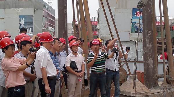觀摩團(tuán)一行60多人,首先來到項(xiàng)目部會(huì)議室。項(xiàng)目總工楊建民利用投影儀,系統(tǒng)介紹了地下連續(xù)墻的發(fā)展歷史、地下連續(xù)墻在K標(biāo)的應(yīng)用情況以及施工工藝等情況。楊總工介紹道:“本項(xiàng)目地下連續(xù)墻是鳳陽路地鐵的重要組成部分,該施工方法在安徽省內(nèi)系首次使用”。