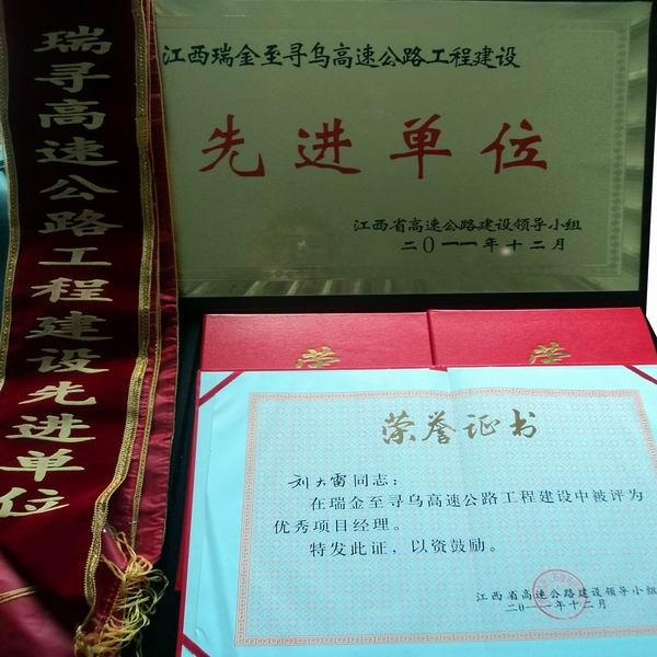 公司承建的瑞尋A7標(biāo)在公司的正確領(lǐng)導(dǎo)下,在以劉大雷同志為首的項目全體員工的共同奮斗下,經(jīng)過兩年的頑強拼搏、艱苦施工,終于實現(xiàn)了瑞尋高速公路的建成通車,在贛南大地描繪了一條絢麗的彩虹,書寫了一幅質(zhì)優(yōu)、安全、廉潔、環(huán)保的壯麗畫卷。瑞尋A7標(biāo)以工程質(zhì)量更優(yōu)、外觀形象更美、生態(tài)環(huán)境更佳、依法管理更嚴(yán)、安全廉潔更好為要求,以抓細(xì)節(jié)、樹精品、講程序、促規(guī)范、善創(chuàng)新、爭一流為管理理念,取得了一系列的優(yōu)異成績。在項目辦的兩次階段評比中均獲得A段第一,全線第二名的好成績,還獲得了業(yè)主頒布的“先進單位”稱號,項目經(jīng)理劉大雷獲得了瑞尋項目“優(yōu)秀項目經(jīng)理”稱號,項目總工戴聲慶、副經(jīng)理鳳爾飛、王星輝和黃明明四人獲得了“先進個人”稱號。