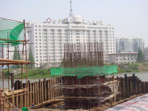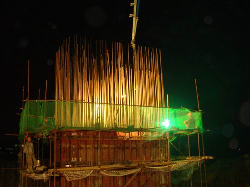 2009年4月21日下午,六安市淠望路大橋主墩5號右幅第一節(jié)(6米)墩身混凝土澆筑完成,標志著淠望大橋主墩已順利出水,提前完成階段性目標。大橋主墩墩身截面尺寸3.5米×6米,高11米,分兩次完成。