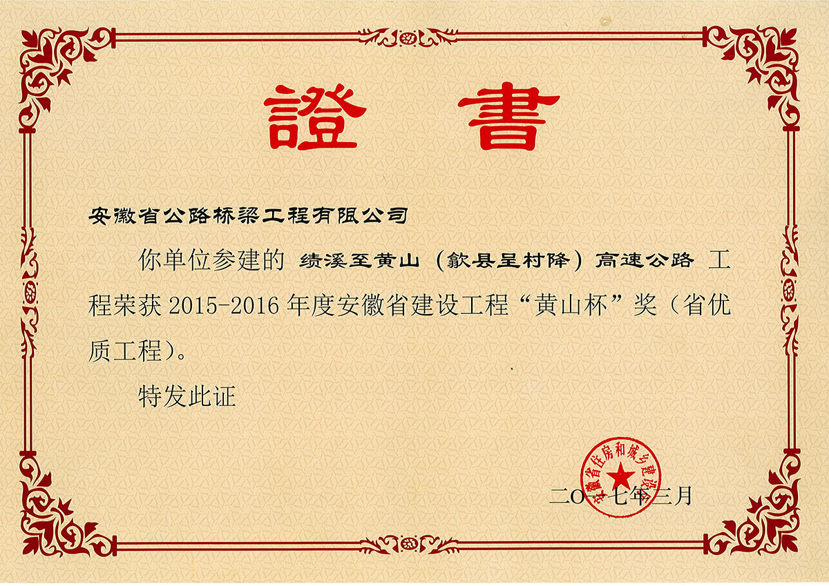 績溪至黃山高速公路項目-黃山杯(省優(yōu)質工程獎)