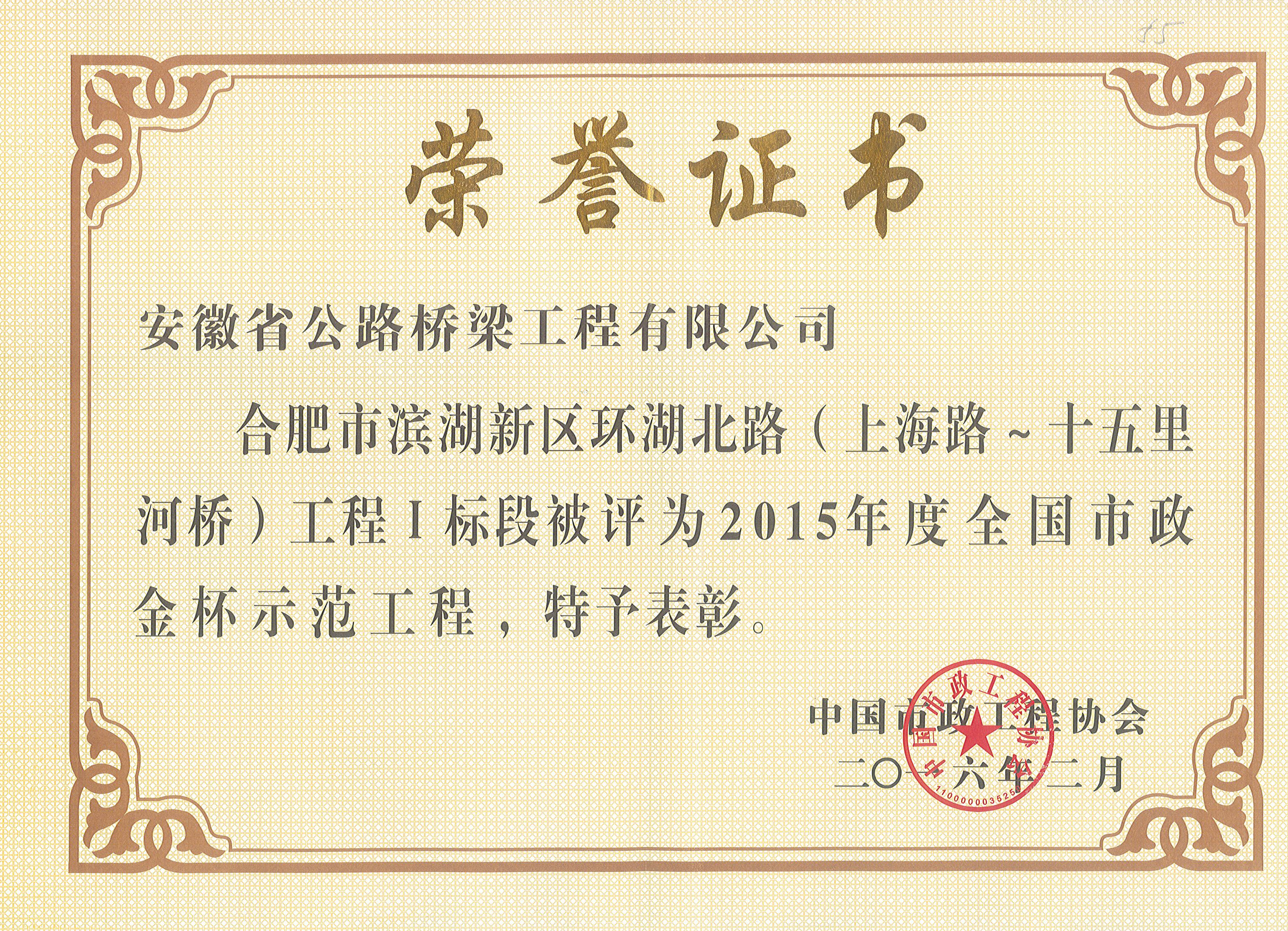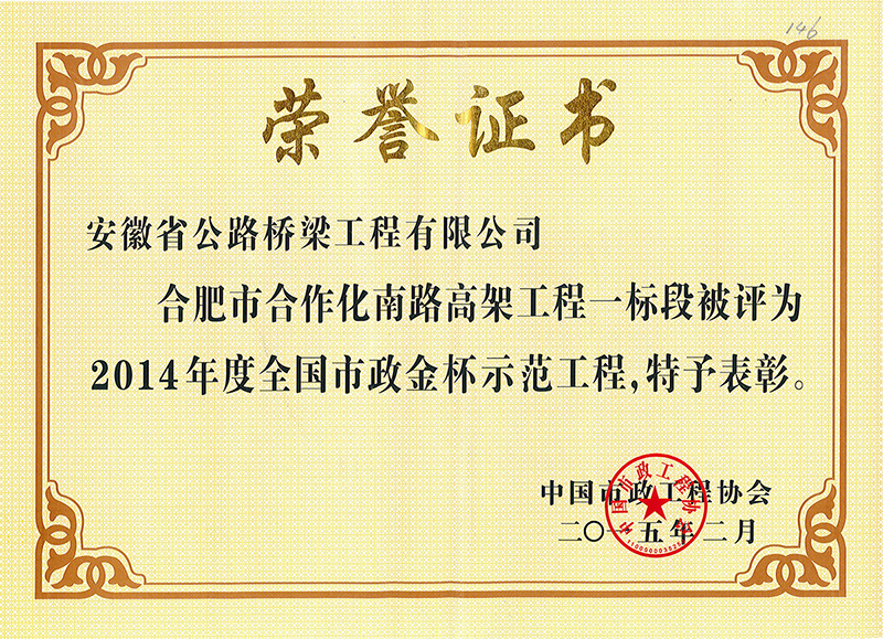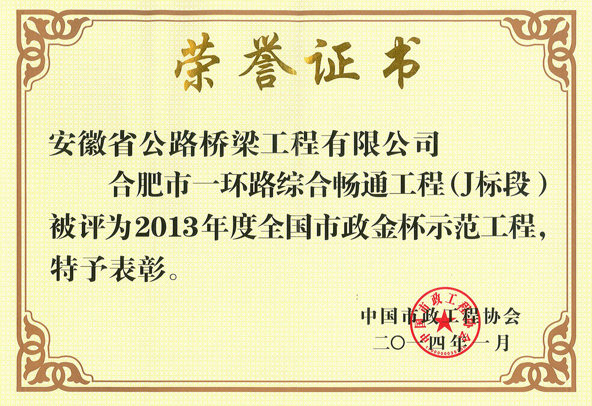 合肥市一環(huán)路暢通工程J標-全國市政金杯示范工程獎