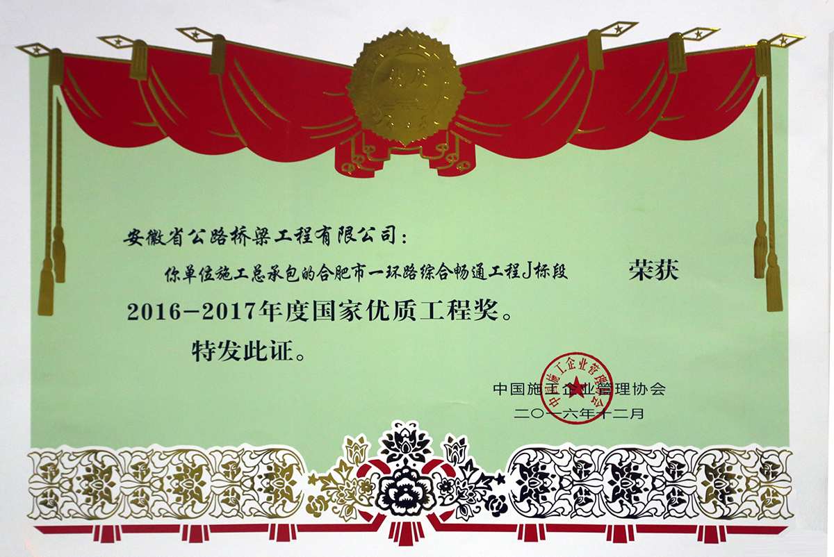 合肥市一環(huán)路暢通工程J標—國家優(yōu)質工程獎